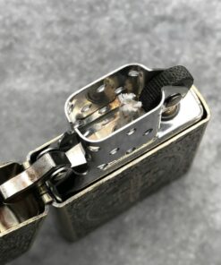 Zorro Họa tiết Chữ Thập Constantine - Z9731A khi được mở nắp, bạn có thể nhận thấy buồng đốt 16 lỗ thông gió tuyệt đối giúp Zorro có thể chịu gió tốt. Bánh xe của Zorro áp dụng công nghệ xen kẽ răng ngang (khác với Zippo là bánh xe chéo). Mang đến hiệu quả tốc độ bắt lửa cao.