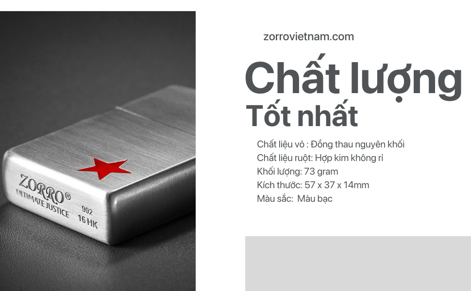 Với thiết kế độc đáo, kết hợp giữa nét cổ điển và hiện đại, bật lửa Zorro hay hộp quẹt Zorro đã nhanh chóng trở thành phụ kiện thời trang được giới trẻ yêu thích. Chất liệu đồng nguyên khối cao cấp, cùng với những họa tiết hoa văn tinh xảo, tạo nên vẻ đẹp sang trọng và bền bỉ theo thời gian.