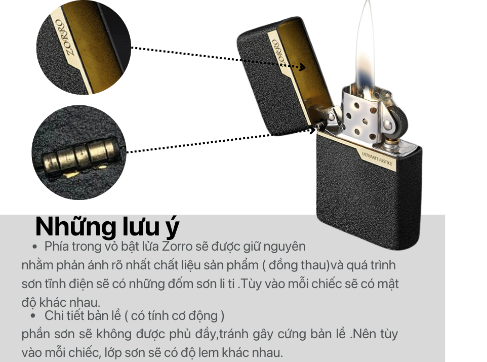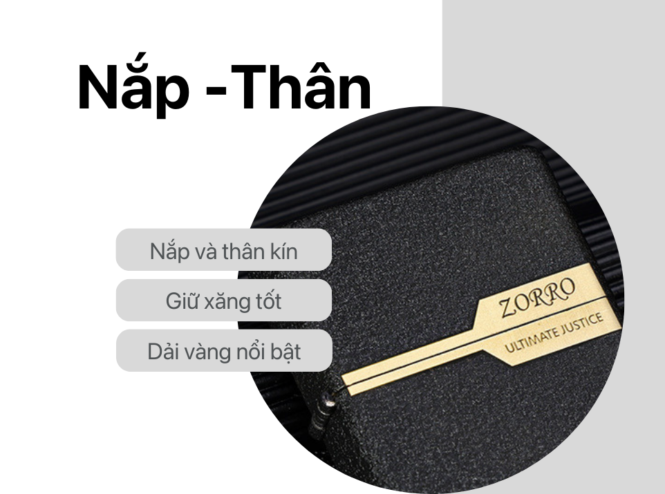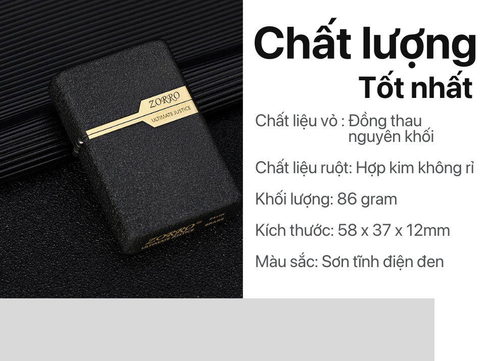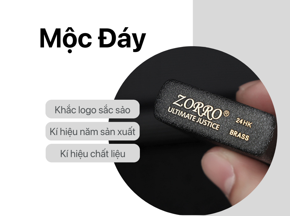 Với thiết kế độc đáo, kết hợp giữa nét cổ điển và hiện đại, bật lửa Zorro hay hộp quẹt Zorro đã nhanh chóng trở thành phụ kiện thời trang được giới trẻ yêu thích. Chất liệu đồng nguyên khối cao cấp, cùng với những họa tiết hoa văn tinh xảo, tạo nên vẻ đẹp sang trọng và bền bỉ theo thời gian.