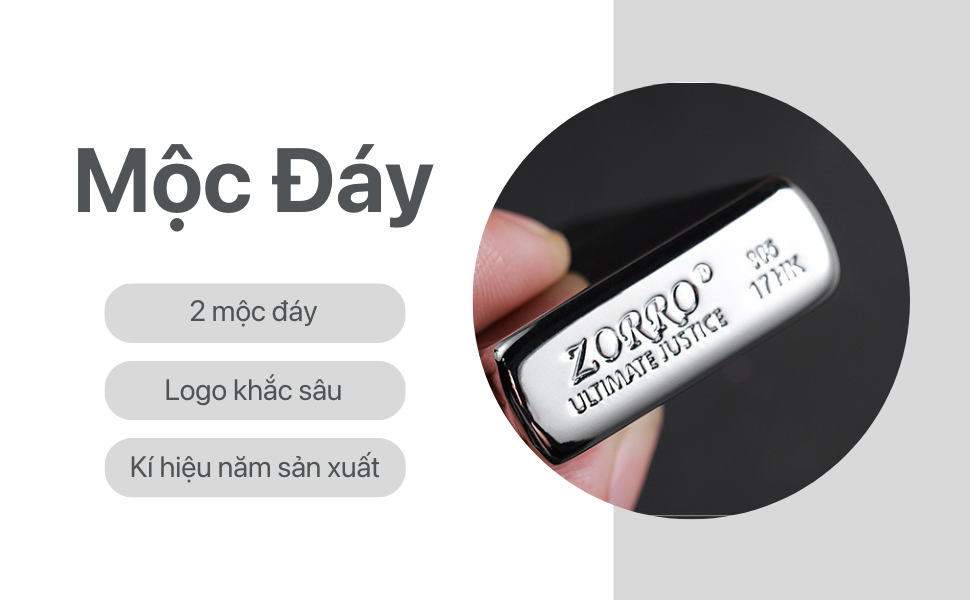 Với thiết kế độc đáo, kết hợp giữa nét cổ điển và hiện đại, bật lửa Zorro hay hộp quẹt Zorro đã nhanh chóng trở thành phụ kiện thời trang được giới trẻ yêu thích. Chất liệu đồng nguyên khối cao cấp, cùng với những họa tiết hoa văn tinh xảo, tạo nên vẻ đẹp sang trọng và bền bỉ theo thời gian.