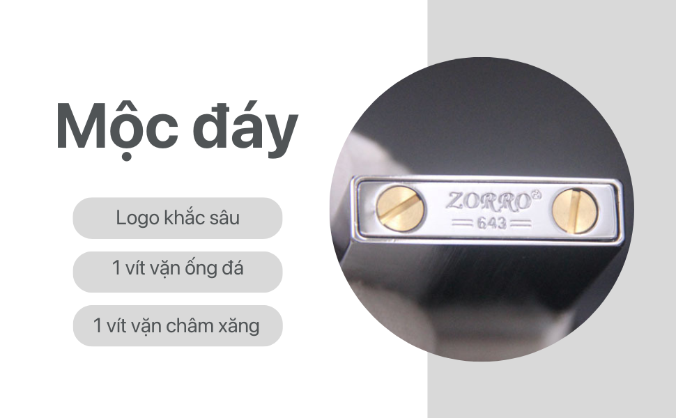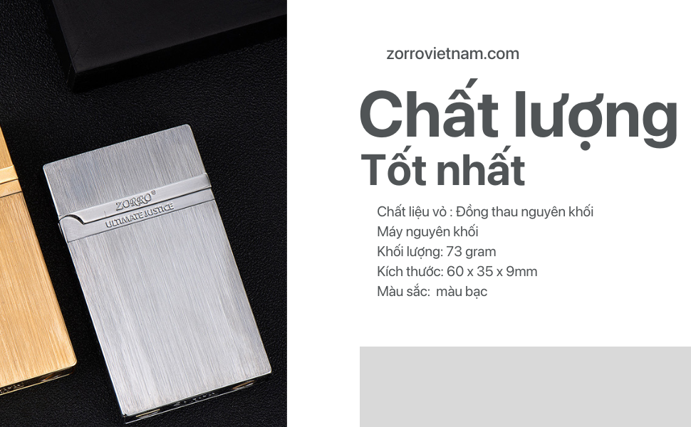 Với thiết kế độc đáo, kết hợp giữa nét cổ điển và hiện đại, bật lửa Zorro hay hộp quẹt Zorro đã nhanh chóng trở thành phụ kiện thời trang được giới trẻ yêu thích. Chất liệu đồng nguyên khối cao cấp, cùng với những họa tiết hoa văn tinh xảo, tạo nên vẻ đẹp sang trọng và bền bỉ theo thời gian.