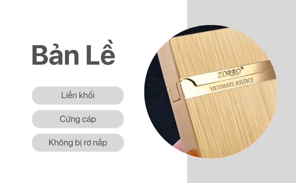 Với thiết kế độc đáo, kết hợp giữa nét cổ điển và hiện đại, bật lửa Zorro hay hộp quẹt Zorro đã nhanh chóng trở thành phụ kiện thời trang được giới trẻ yêu thích. Chất liệu đồng nguyên khối cao cấp, cùng với những họa tiết hoa văn tinh xảo, tạo nên vẻ đẹp sang trọng và bền bỉ theo thời gian.